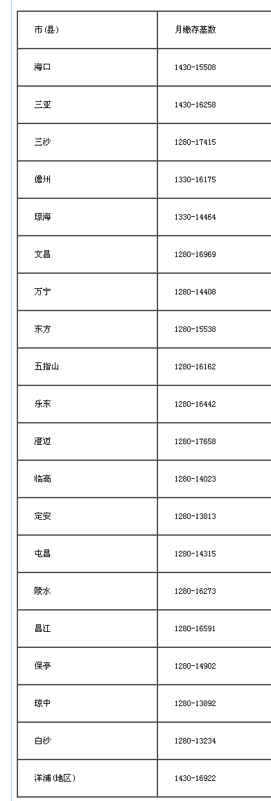 按照《住房公积金办理条例》及《关于住房公积金办理若干具体问题的指点看法》(建金管〔2005〕5号)的相关,根据《海南省人平易近关于调整最低工资尺度的通知》(琼府〔2016〕25号)及省统计局发布的2016年相关正在岗职工年平均工资,2017年度住房公积金缴存基数范畴如下!